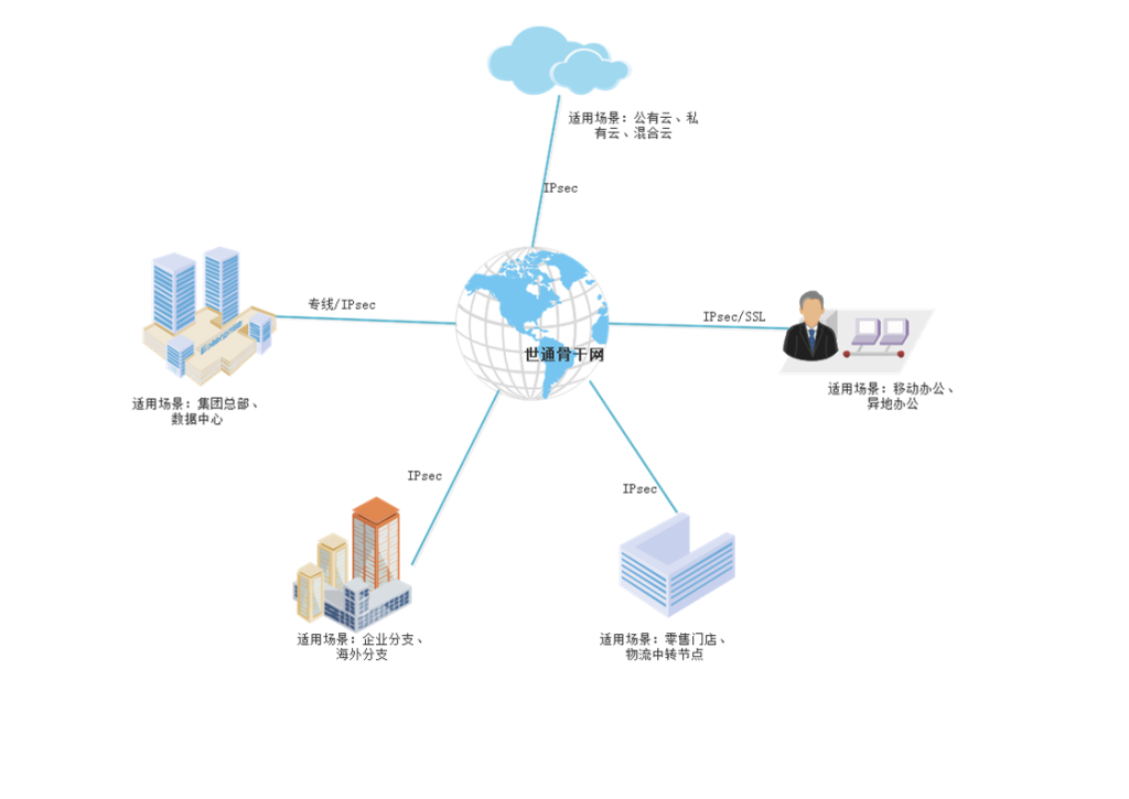 软件定义广域网(SD WAN) / 产品与服务 / 作者: aa 1、构建高速稳定的VPN隧道 2、一键互联互通 3、帮助企业快速实现多分支机构、多门店之间的快速通道,简化企业混合云运架 4、为企业定制更合适业务发展的WAN解决方案 5、整合了世通的骨干网及公有云资源,为用户提供公有云与数据中心之间的高速互通
